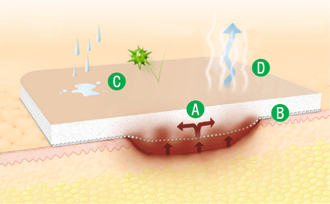 Stratul suport PU semipermeabil oferă un mediu adecvat de umed pentru plăgi.