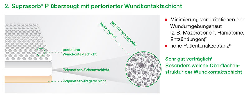 Suprasorb P sensitive este ușor de aplicat și plăcut de moale și confortabil de purtat, este disponibil în diferite versiuni: neadeziv, autoadeziv, pentru sacrum, călcâi și deget de la mâini/de la picioare. Versiunea autoadezivă are o margine adezivă suplimentară, prietenoasă cu pielea.