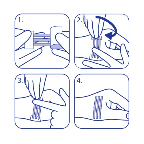 De asemenea, stripurile pot fi aplicate unul câte unul. În cazul articulațiilor sau al părților corpului unde marginile inciziei sunt supuse extensiei și tensiunii, este indicată aplicarea încrucișată.